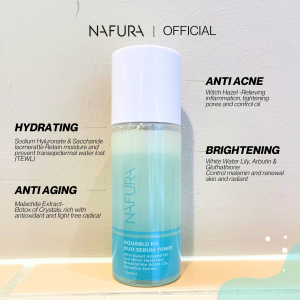 Aquablu Brightening HA Duo Serum Toner is a skincare powerhouse designed to enhance skin radiance and health. Enriched with Sweet Almond Oil and Witch Hazel Leaf Water, it soothes and balances the skin. Key ingredients like Niacinamide and Ceramide NP strengthen the skin barrier, while Arbutin and Glutathione brighten and even out skin tone. Malachite Extract and White Water Lily Flower Extract provide antioxidant protection, and Saccharide Isomerate locks in moisture. Extracts like Scutellaria Baicalensis Root and Paeonia Root calm inflammation, making it ideal for achieving a luminous, hydrated, and balanced complexion. Perfect for all skin types seeking a radiant glow.
