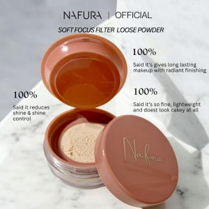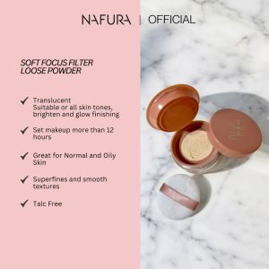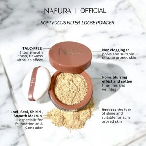 For skin that whispers luxury and dazzles like dusk, let Nafura Soft Focus Translucent Filter Powder be your secret to a perfected, otherworldly finish.